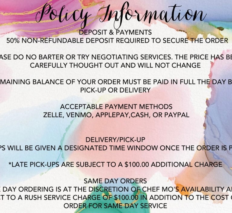 POLICIES, ORDERING, AND PAYMENT INFORMATION